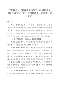 市领导学习《党政机关厉行节约反对浪费条例》交流发言:厉行节约扬清风,条例践行促发展