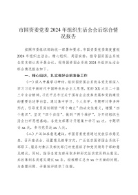 市国资委党委2024年组织生活会会后综合情况报告
