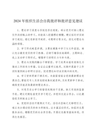 2024年组织生活会自我批评和批评意见建议