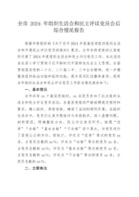 全市2024年组织生活会和民主评议党员会后综合情况报告