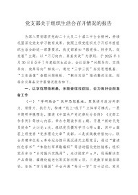 党支部关于组织生活会召开情况的报告
