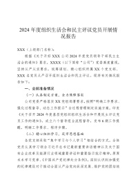 2024年度组织生活会和民主评议党员开展情况报告