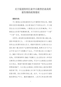 关于促进纺织行业中小企业高质量发展的政策建议