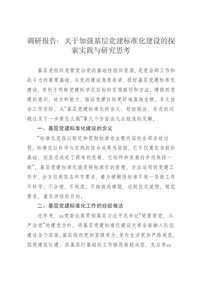 调研报告:关于加强基层党建标准化建设的探索实践与研究思考