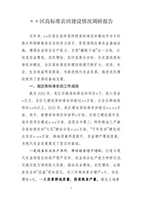 某区高标准农田建设情况调研报告