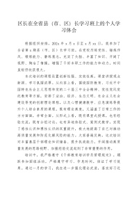 区长在全省县(市、区)长学习班上的个人学习体会