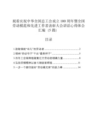 观看庆祝中华全国总工会成立100周年暨全国劳动模范和先进工作者表彰大会讲话心得体会汇编(5篇)