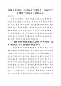 廉政党课讲稿:持续深化作风建设,纵深推进党风廉政建设和反腐败斗争