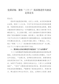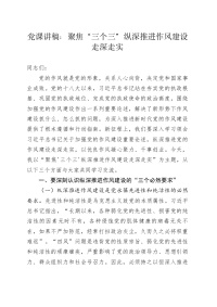 党课讲稿:聚焦“三个三” 纵深推进作风建设走深走实