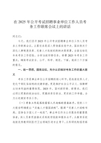 在2025年公开考试招聘事业单位工作人员考务工作联席会议上的讲话
