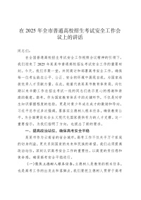 在2025年全市普通高校招生考试安全工作会议上的讲话