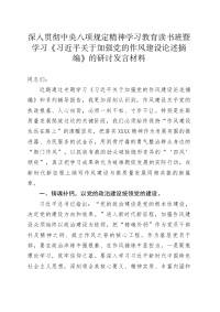深入贯彻中央八项规定精神学习教育读书班暨学习《习近平关于加强党的作风建设论述摘编》的研讨发言材料20250523