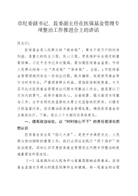 市纪委副书记、监委副主任在医保基金管理专项整治工作推进会上的讲话