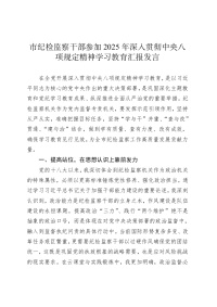 市纪检监察干部参加2025年深入贯彻中央八项规定精神学习教育汇报发言