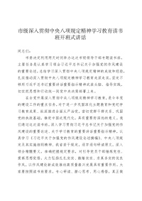 市级深入贯彻中央八项规定精神学习教育读书班开班式讲话