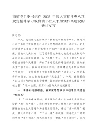 街道党工委书记在2025年深入贯彻中央八项规定精神学习教育读书班关于加强作风建设的研讨发言20250421