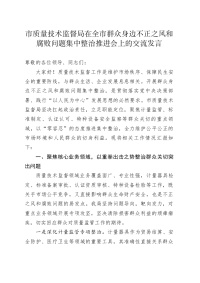 市质量技术监督局在全市群众身边不正之风和腐败问题集中整治推进会上的交流发言