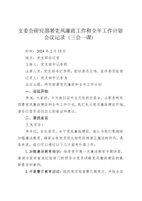 支委会研究部署党风廉政工作和全年工作计划会议记录(三会一课)