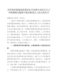 市营商环境建设监督局在全市群众身边不正之风和腐败问题集中整治推进会上的交流发言