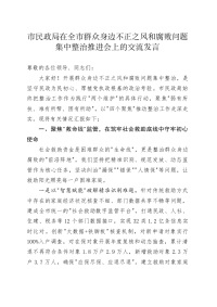 市民政局在全市群众身边不正之风和腐败问题集中整治推进会上的交流发言
