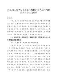 街道党工委书记在生态环境保护暨人居环境整治动员会上的讲话