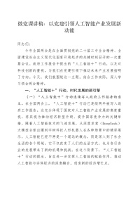 微党课讲稿:以党建引领人工智能产业发展新动能