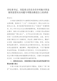 市纪委书记、市监委主任在全市乡村振兴资金使用监管突出问题专项整治推进会上的讲话