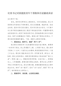纪委书记对新提拔青年干部集体任前廉政谈话