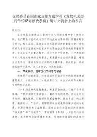 支部委员在国企党支部专题学习《党政机关厉行节约反对浪费条例》研讨交流会上的发言