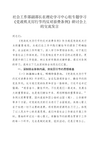 社会工作部副部长在理论学习中心组专题学习《党政机关厉行节约反对浪费条例》研讨会上的交流发言