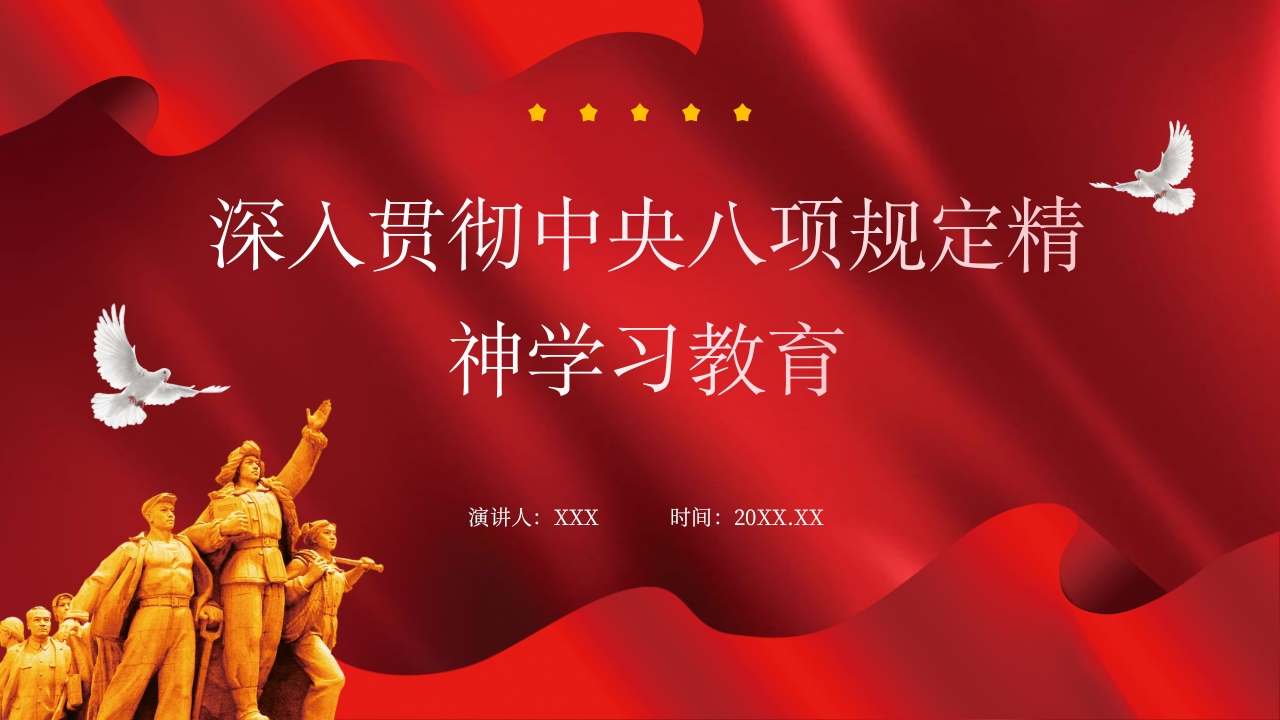 深入贯彻中央八项规定精神学习教育演讲人:XXX时间:20XX.XX
